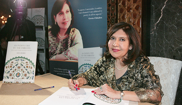 Geeta Chhabra signing the book
