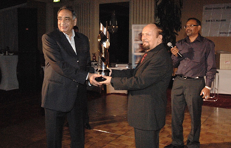 (From Left to Right) – Ved Chhabra receiving the Business Leader Award 2010 from O. T. Mehta.