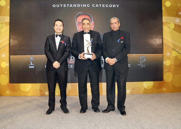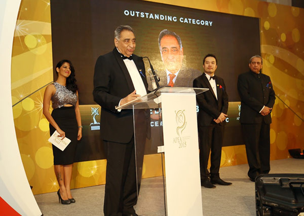 Ved Chhabra with all smiles receiving the Asia Pacific Entrepreneurship Awards 2015 for : The Outstanding Category.