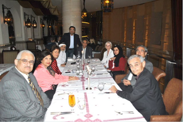 (From Left to Right) – Dr. Nizar Ghanem from Yemen, Geeta Chhabra from India, Francesca M. Corrao from Italy, Dr. Shihab Ghanem from UAE, Rakesh Tharoor from India, Ved Chhabra from India, Val Ghanem from Canada, T. Shihab from UAE, Dr. Akash Ouchi from Japan, Dr. Qais Ghanem from Canada.