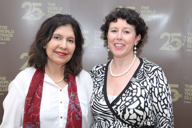 Geeta Chhabra with Jane Nortcote – enjoying the special arrangements celebrating the 25th anniversary of the World Trade Club.