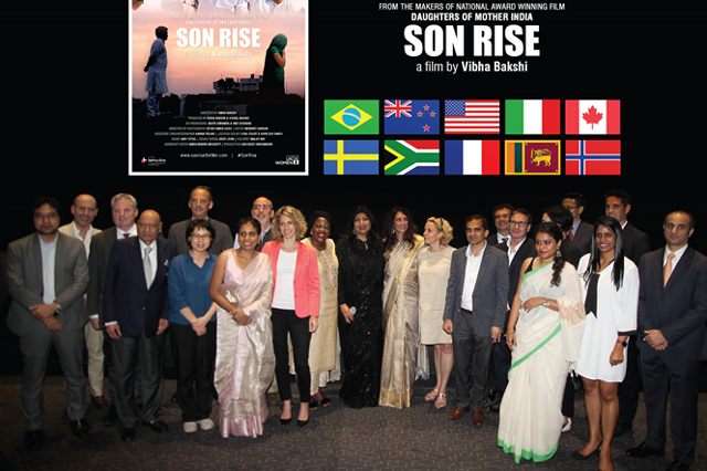 Filmmaker Vibha Bakshi with the Consul Generals of Brazil, USA, Italy, Canada, Norway, Sweden, South Africa, France, China, New Zealand and Sri Lanka, Nishtha Satyam, UN Women’s Deputy Head and Prashant Pathrabe, Director General of Films Division at the special screening of SON RISE, hosted by the Consular Corps.