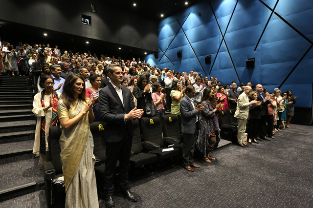 (Left to Right) – Prashant Pathrabe, Director General, Films Division, Nishtha Satyam Deputy Country Representative, India, Bhutan, Maldives and Sri Lanka, Vibha Bakshi-National Award Winning Filmmaker, Vishal Bakshi-Avatar Growth Capital Founder and Managing Partner and Mr. & Mrs. Hays-vice-dean of the Consular Corps and New Zealand Consul General.