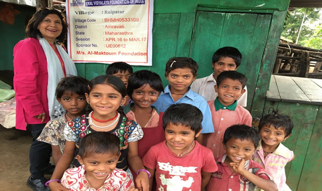 Geeta Chhabra at Ruipatar Village, located in the forest range of Melghat, Amravati District-Maharashtra, India, the EKAL School is sponsored by the Al Maktoum Foundation-Dubai, UAE.