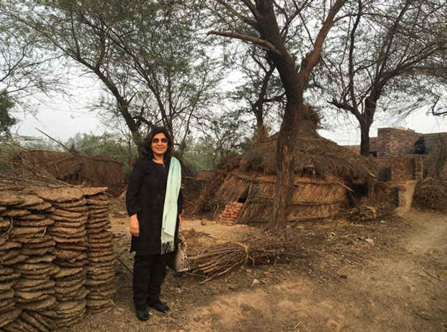 While inspecting the various EKAL Schools sponsored by the Al Maktoum Foundation-Dubai, UAE, Geeta Chhabra stops at a typical rural zone of Northern India. The cow dung cakes are used as fuel for the kitchen. The straw structures are utilized for the purpose of storing crops.