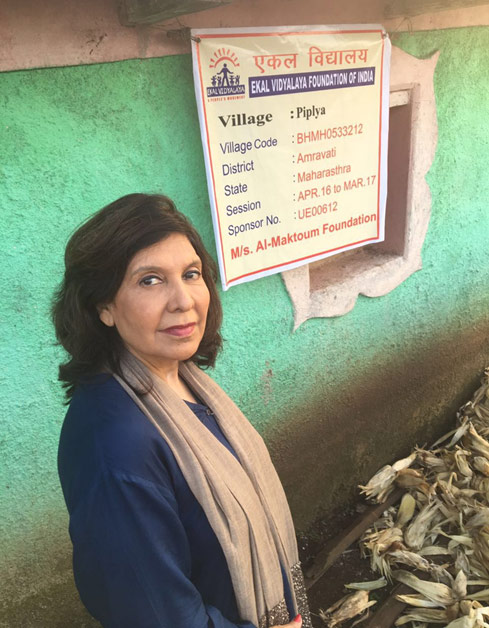 Geeta Chhabra with the tribal children in Sumita village in Amravati District in Maharashtra (India) which is sponsored by the Al Maktoum Foundation-Dubai (UAE).