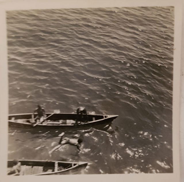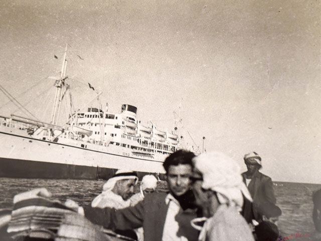 ‘In the 1950s, Muscat also had no jetty for the ships to come alongside. But the ships could anchor very near to the shore, may be about half a kilometer away. Petty traders in their tiny boats came by the ship to sell their wares – shells, conches and Shankhs. Passengers readily bought things by stringing down baskets with ropes, flung from their ship. The water of the sea was usually calm and very, very clear. We used to throw a coin of 25 Paisa or 50 Paisa, and the local boy would jump in water and bring up the coin from the bottom. We, too, could see the coin lying at the bottom! These are the experiences, never to be forgotten.’