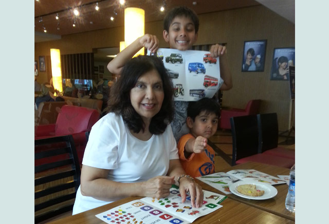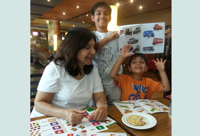 Geeta Chhabra at her Dubai residence with Varun & Vir Bakshi.