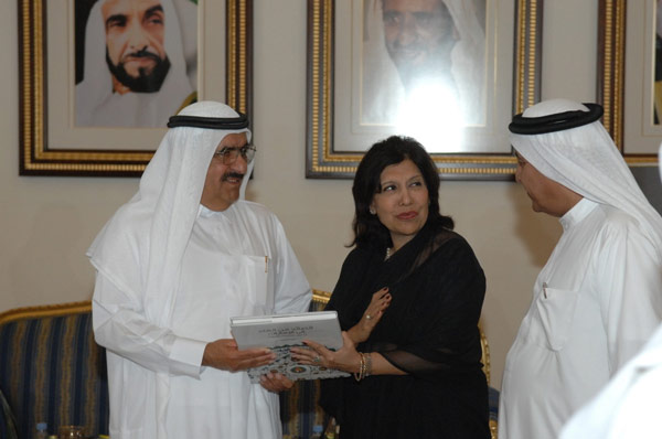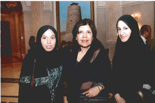 At the gathering in Zabeel Palace, celebrating the achievements of Al Maktoum Foundation. Geeta Chhabra with H.E. Mirza Al Sayegh, and a special invitee.