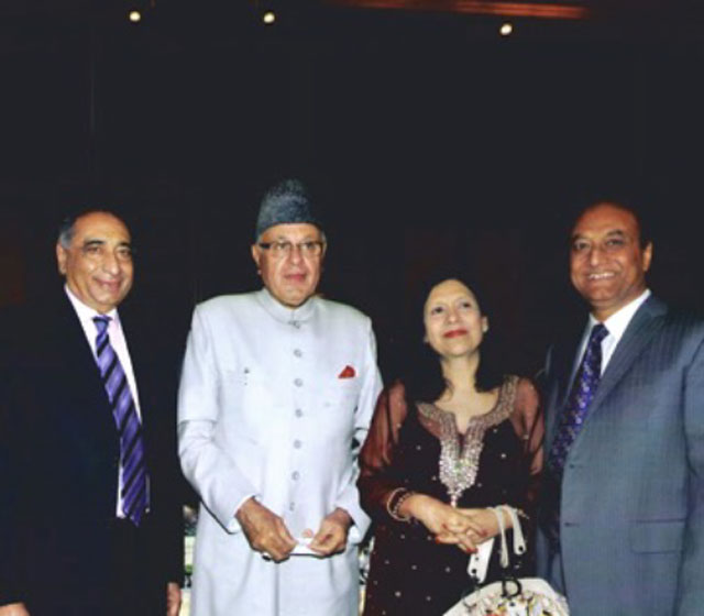 (From Left to Right) – Ved Chhabra, Dr. Farooq Abdullah – Minister of New & Renewable Energy, India, Geeta Chhabra and Paras Shahdadpuri – President of IBPC. In January 2010 at IBPC Event.