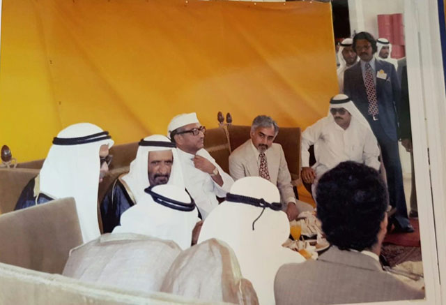 In the photo taken by Narain R. Sawlani, is Mr. H.N. Bahuguna, Minister of Petroleum, who specially flew down to attend the inauguration. Also seen are Mr. Saif Al Ghurair & Mr. Ansari, Indian Ambassador-UAE.