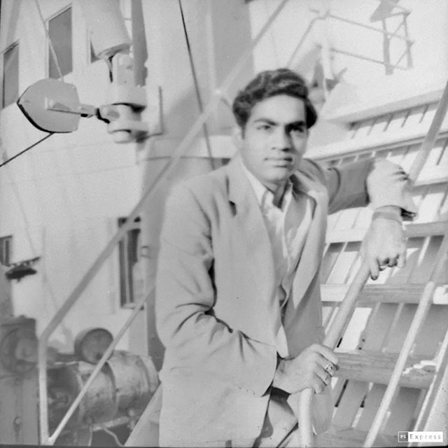 Seen in the monochrome picture is Narain Sawlani standing on MV Dara – years before the ship exploded and sank off Dubai in 1961.