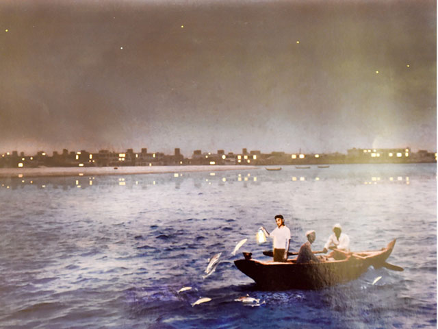 Look! See! Narain Sawlani’s digital recreation of a marvel… fish jumping up to the surface as they saw light of a Petromax lantern in the darkness of night, in Dubai waters.