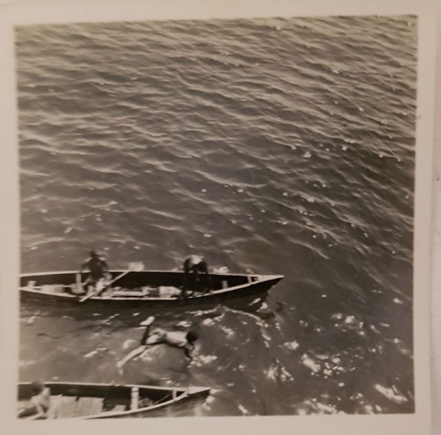‘In the 1950s, Muscat also had no jetty for the ships to come alongside. But the ships could anchor very near to the shore, may be about half a kilometer away. Petty traders in their tiny boats came by the ship to sell their wares – shells, conches and Shankhs. Passengers readily bought things by stringing down baskets with ropes, flung from their ship. The water of the sea was usually calm and very, very clear. We used to throw a coin of 25 Paisa or 50 Paisa, and the local boy would jump in water and bring up the coin from the bottom. We, too, could see the coin lying at the bottom! These are the experiences, never to be forgotten.’