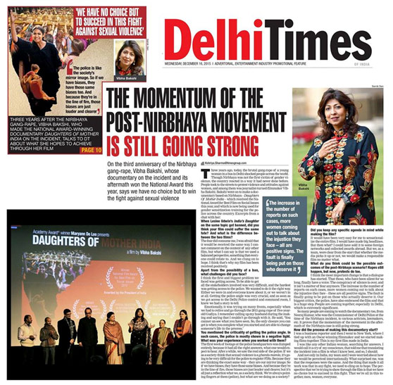 At the recent special screening in New Delhi of my daughter Vibha Bakshi’s documentary film: Daughters of Mother India – media coverage was intense, and audience response was ‘House Full’!
