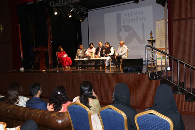 At the Interfaith Panel Discussion, Geeta Chhabra moderates the dialogue with Panellists.