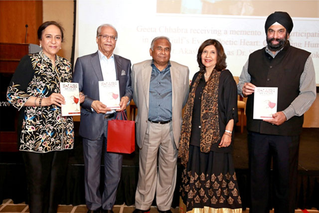 (From Left to Right) – Bubbles Kandhari, Hussein Adam Ali-Chairman of SAPG, Dr. Harshad R. Mehta, Geeta Chhabra & Surender Kandhari at the book launch of the book: Smash My Glass in 2016.