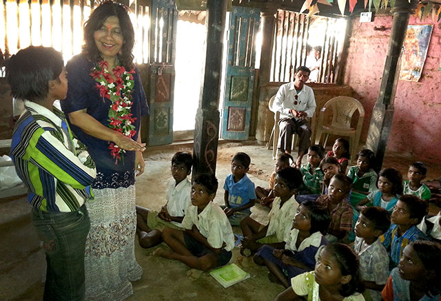 Geeta Chhabra with the tribal children of the EKAL class.