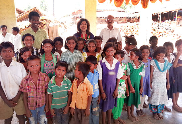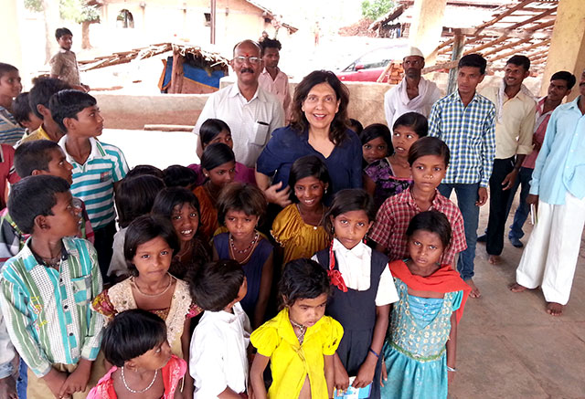 Geeta Chhabra with the tribal kids of Devalacha Pada.