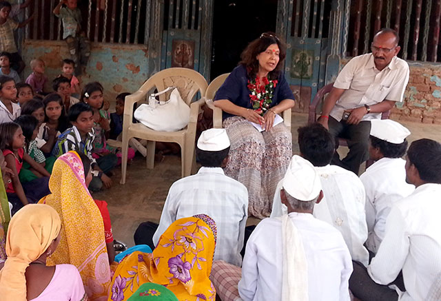 Geeta Chhabra having a dialogue with the tribal people of Dhan Pada.