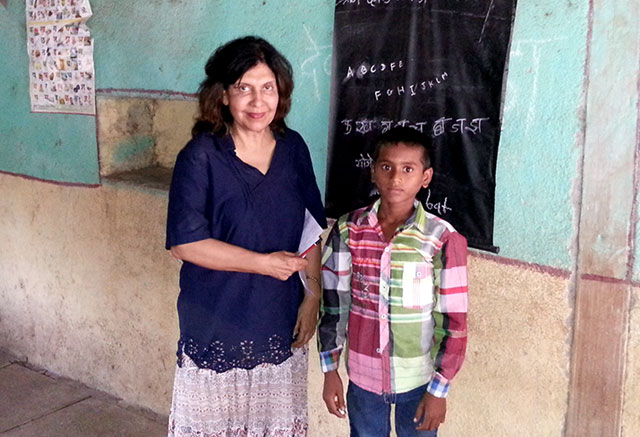 At Dhan Pada – Geeta Chhabra with the tribal child – Ishwar, who has special needs as his speech and hearing is impaired.