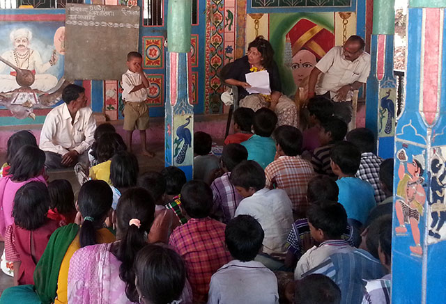 Geeta Chhabra at the EKAL class with the children of Dhan Pada.