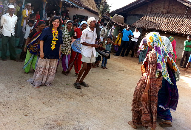 At Dhan Pada – Geeta Chhabra gets a warm welcome from the tribal women.