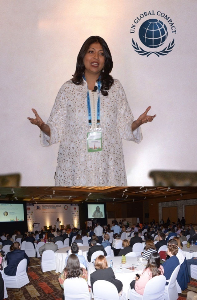 Vibha Bakshi was the opening speaker at the United Nations Global Compact conference for over 400 participants from business, finance, academia, civil society, and the United Nations.