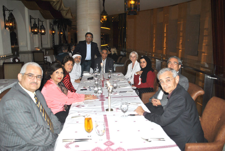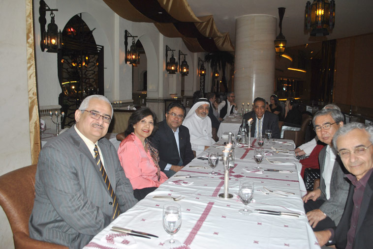 (From Left to Right) – Dr. Nizar Ghanem from Yemen, Geeta Chhabra from India, Francesca M. Corrao from Italy, Dr. Shihab Ghanem from UAE, Rakesh Tharoor from India, Ved Chhabra from India, Val Ghanem from Canada, T. Shihab from UAE, Dr. Akash Ouchi from Japan, Dr. Qais Ghanem from Canada.