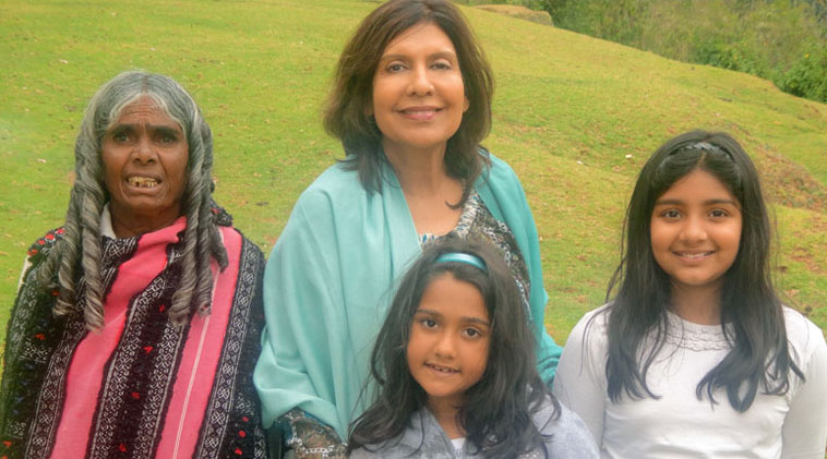 From Left to Right Pengalama (Toda lady), Geeta Chhabra with her grand-children - Samira Chhabra, Eesha Chhabra in Coonoor (South India). |