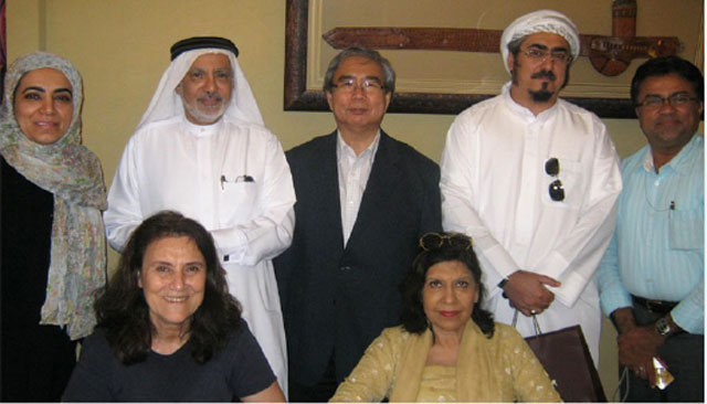 (From Left to Right Standing) – Wiaam Ghanem, Dr. Shihab Ghanem, Dr. Akash Ouchi – Representative for Soka Gakkai International for South Asia and Middle East, Waddah Ghanem, Rakesh Tharoor – Gen. Director of Soka Gakkai International Gulf.