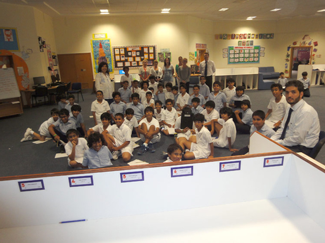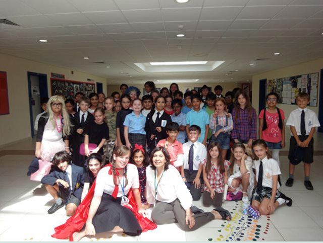 Geeta Chhabra with Charis (School Educator) and children at the Poetry Workshop at Repton School, Dubai during the Emirates Airline Festival of Literature 2013.