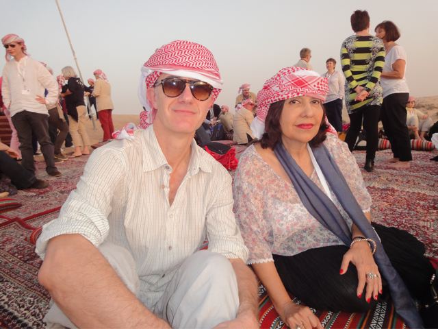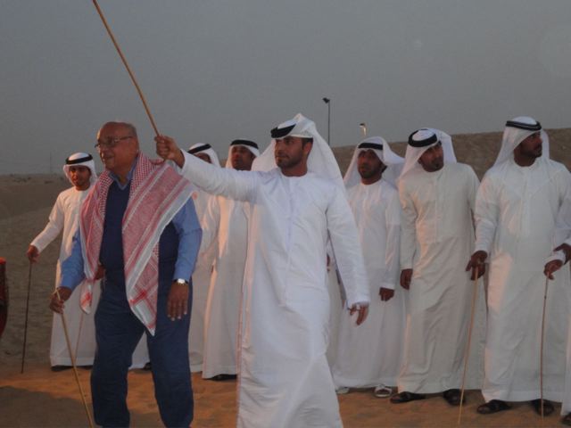 A guest joining the traditional group of Emiratis welcoming poets-authors…