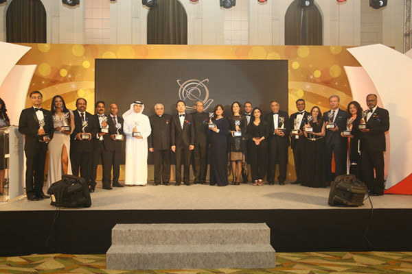 The award-winners gather for a photographic session at Al Najoom Ballroom, Shangri-la Hotel, Dubai.