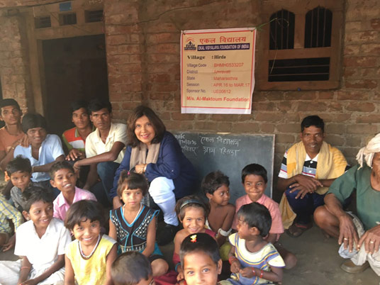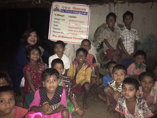 Geeta Chhabra with the tribal children in Sumita village in Amravati District in Maharashtra (India) which is sponsored by the Al Maktoum Foundation-Dubai (UAE).