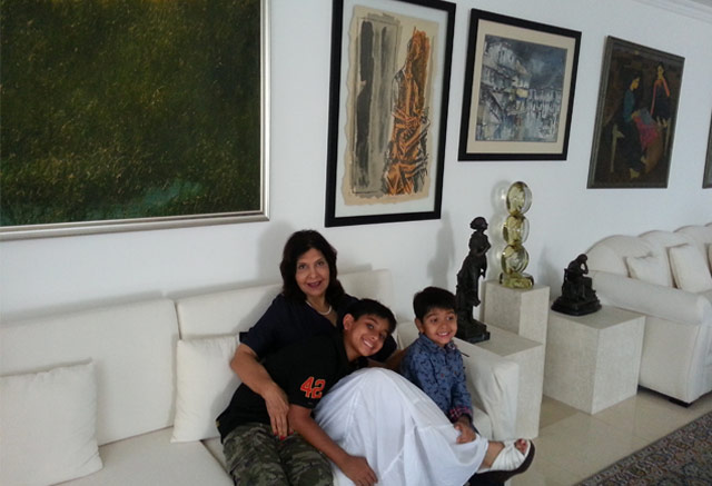 Geeta Chhabra at her Dubai residence with Varun & Vir Bakshi.