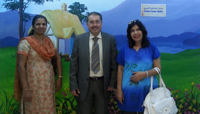 (From Left to Right) – Ahmed Ibrahim Al Tartoor, Geeta Chhabra and Mary Braganza in the cheerful lobby of Sharjah Social Services Department.
