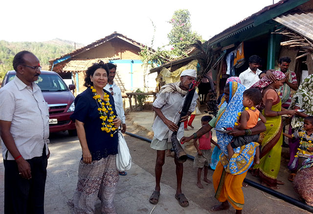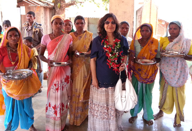 At Dhan Pada – Geeta Chhabra gets a warm welcome from the tribal women.