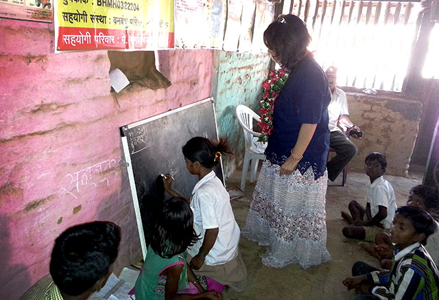 Geeta Chhabra with the EKAL team and tribal children… at Devalacha Pada