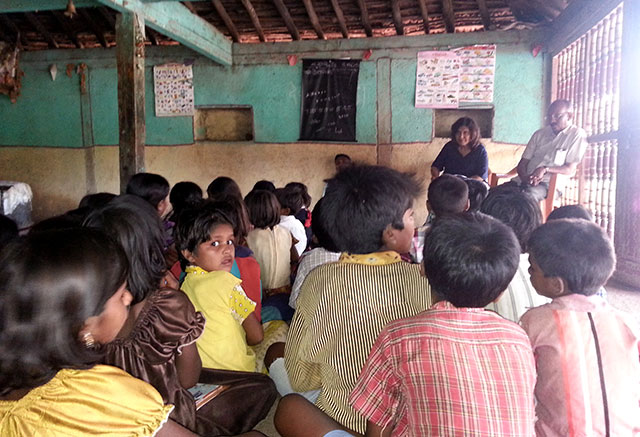 Geeta Chhabra at the EKAL class with the children of Dhan Pada.