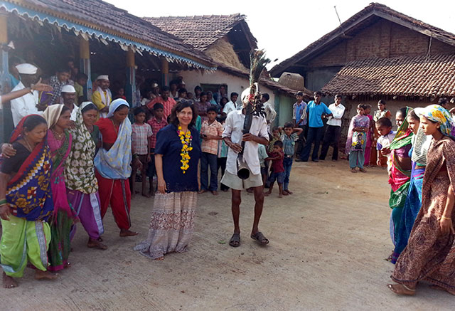 Geeta Chhabra with the tribal folks of Gaydhond.