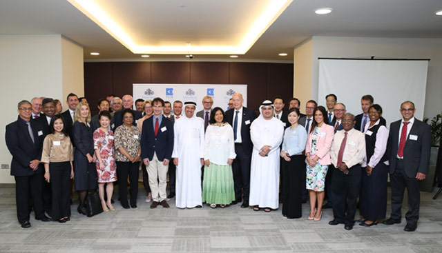 (From Left to Right) - Marwan Abedin-CEO of Dubai Healthcare City, Geeta Chhabra-Poet, Dr. Hussain Abdelrahman Al Rand-Assistant Undersecretary for Health Centers and Clinics, Ministry of Health, UAE, and Kees Sol-Chairman of the WAEH.