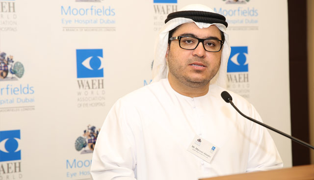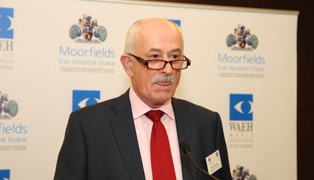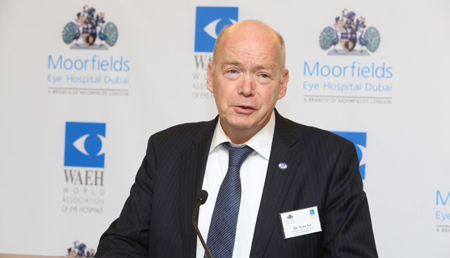Mr. John Pelly-Chief Executive of Moorfields Eye Hospital London, addressing delegates at WAEH Conference at Dubai Healthcare City-UAE.