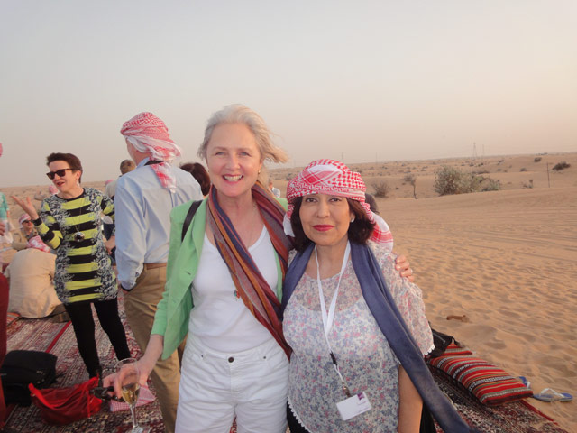 (From Left to Right) – Artemis Cooper, Geeta Chhabra at the Desert Safari.